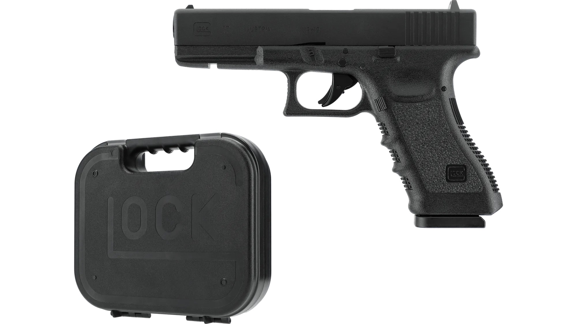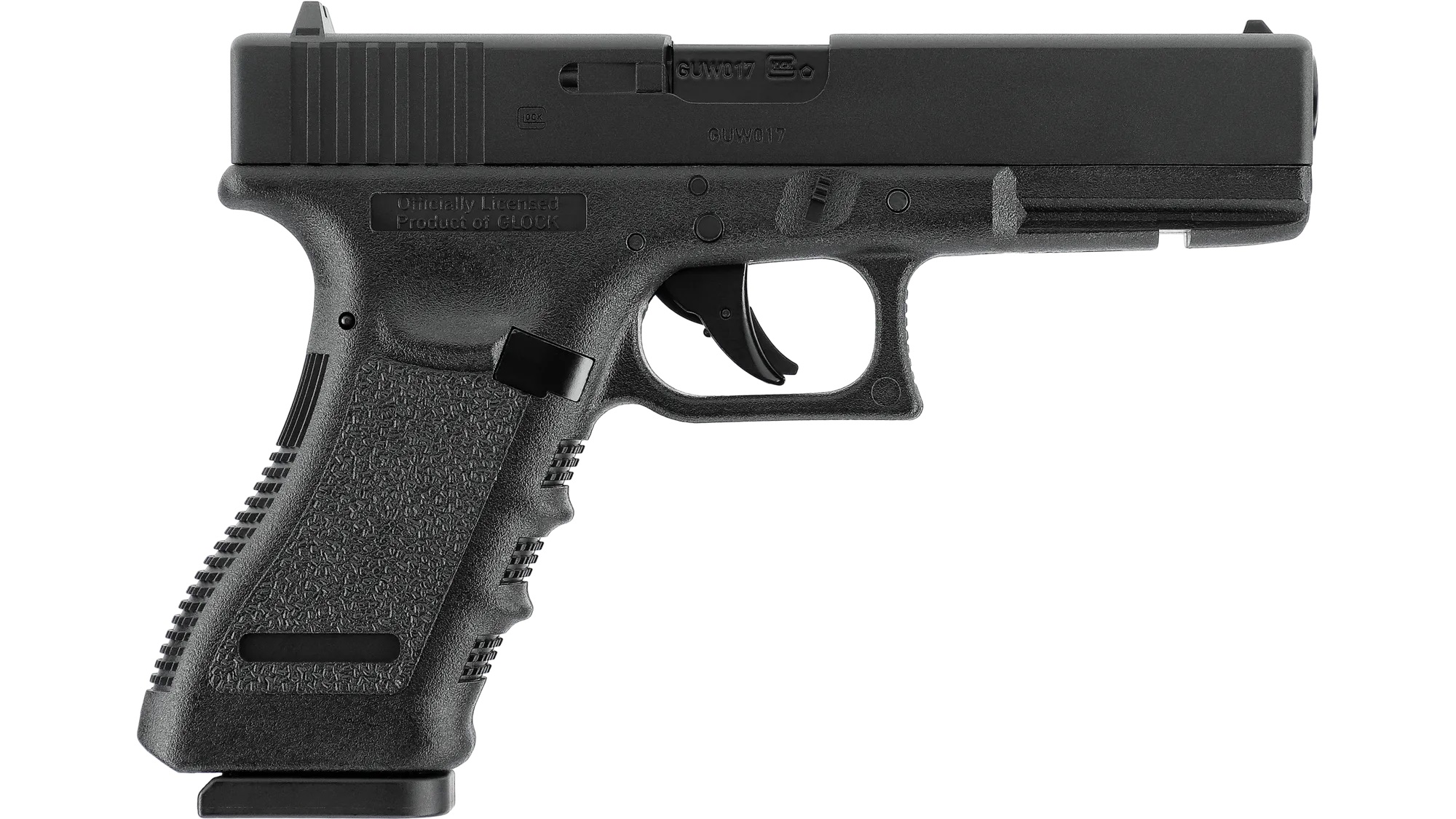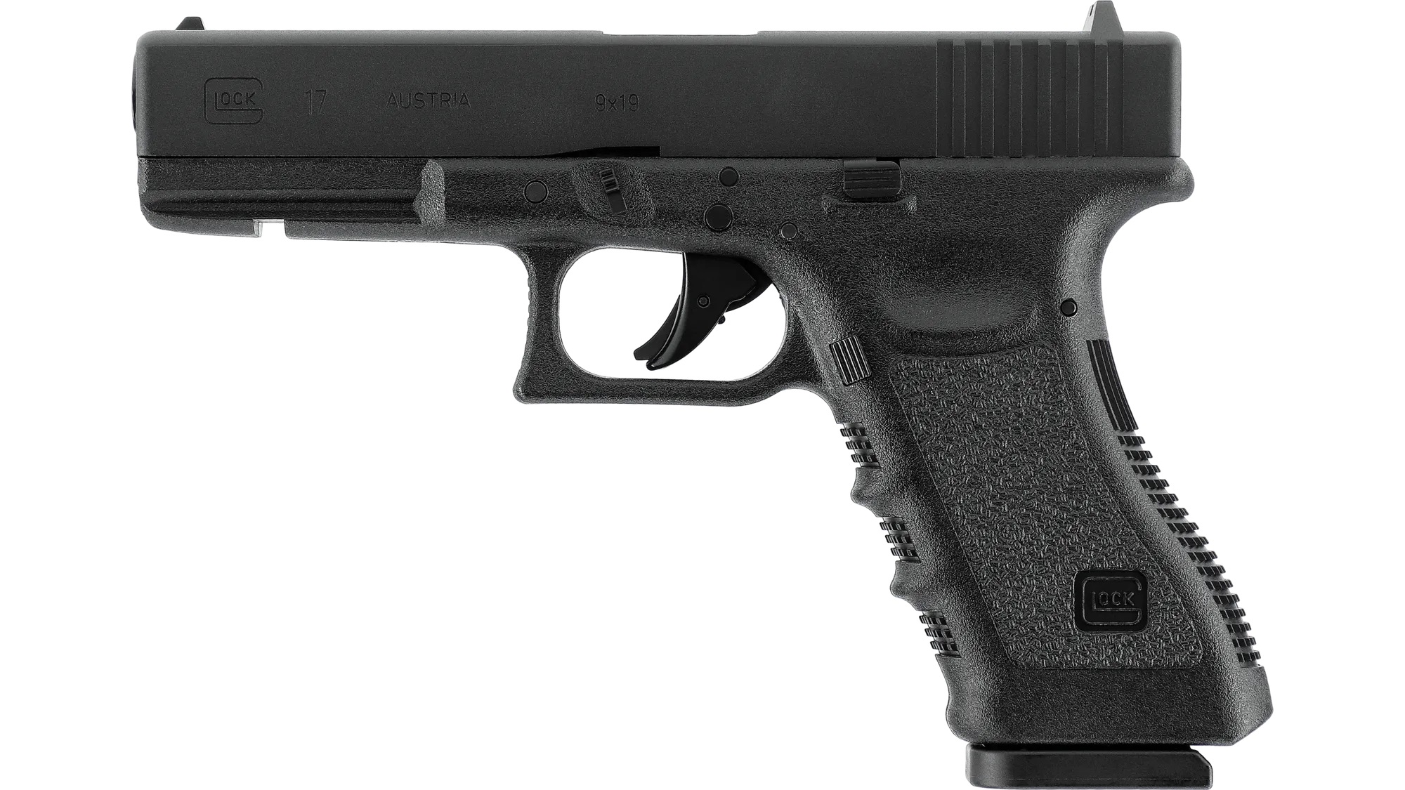 Glock 17 är även i luftpistolutförande mer eller mindre helt identisk med originalet, vilket gör att Glock 17 modeller även är mycket heta även ibland samlarkretsar och andra vapenentusiaster. Alla märken och loggotyper som finns på originalet finns även på luftpistolsmodellerna. Blowbacken med den ”tunga” metall manteln ger en mycket realistisk känsla. Pistolen är avsedd för diabolokulor kaliber 4,5mm men går även att skjuta med stålrundkulor kaliber 4,42mm. Räfflad pipa. Drivs med 12g kolsyrepatroner. Här får du en pistol som kommer ge dig många timmars skönt och underhållande skytte! Levereras i en Glock original vapenväska.