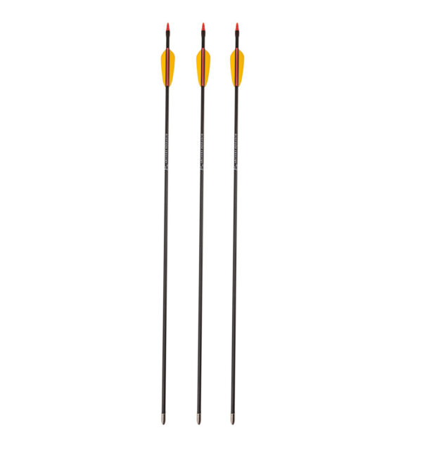 Prisvärd och slittålig pil för pilbågar med en dragstyrka på upp till 30 lbs. Pilen är en blandning mellan kolfiber/glasfiber. För att bedriva ett säkert skytte och spara dina pilar från slitage och för att förhindra att de går av ska du beskjuta en tavla ämnad för bågskytte. Tänk på att den olikfärgade fenan skall vändas utåt från pilbågen så sparar du många fenor.