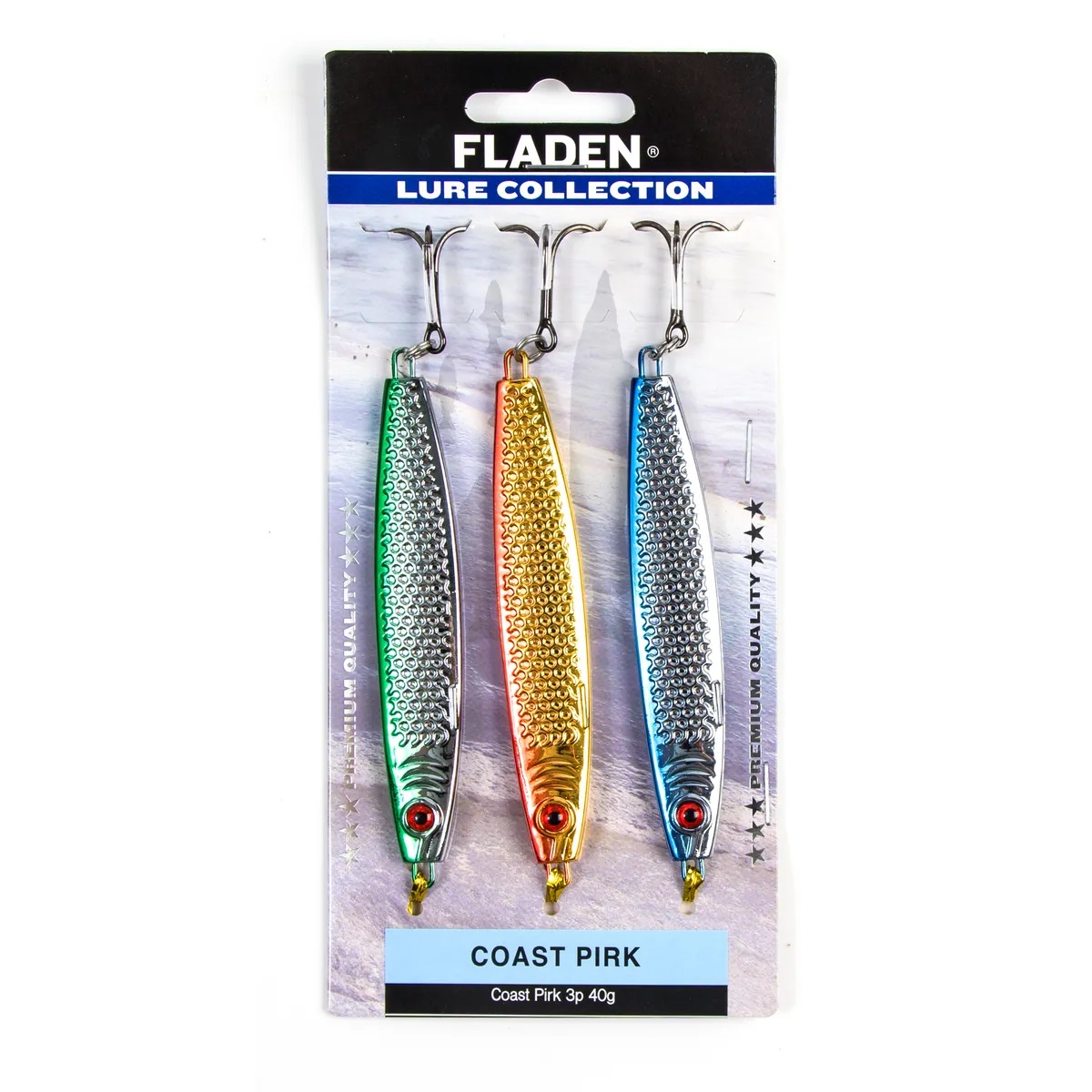 Fladen blyfria kustdrag – 3-pack pirkar för havsfiske efter exempelvis torsk, sej och makrill.