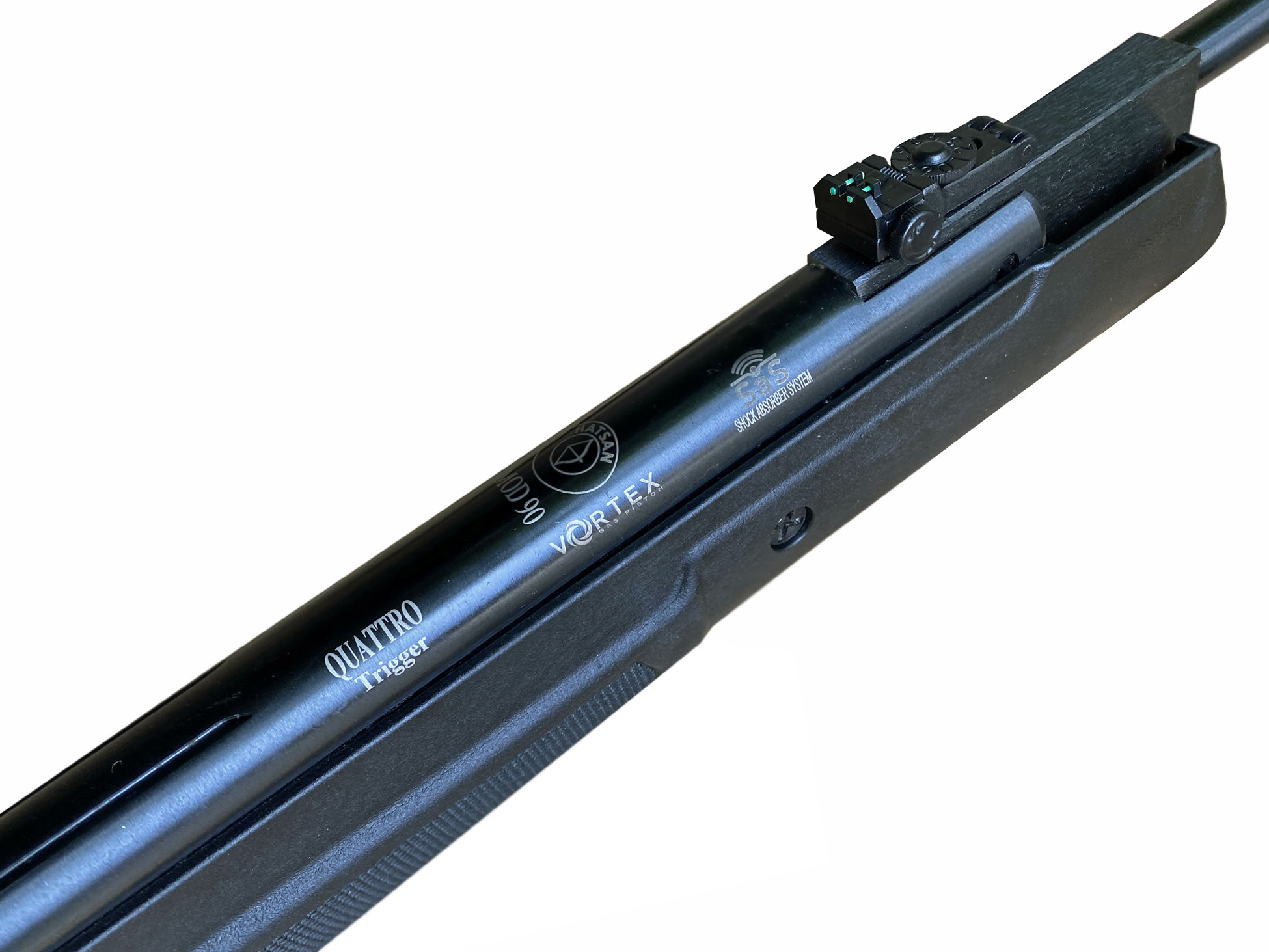 Luftgevär Hatsan Vortex modell 90 till ett fantastiskt bra pris! Fullmatad modell med TruGlo fiberoptiska sikten, SAS, och Quattro avtryckarpaket. Att skjuta med gaspistong ger dig ett betydligt skönare och mjukare skytte. Ett mycket bra gevär till ett fantastiskt pris!