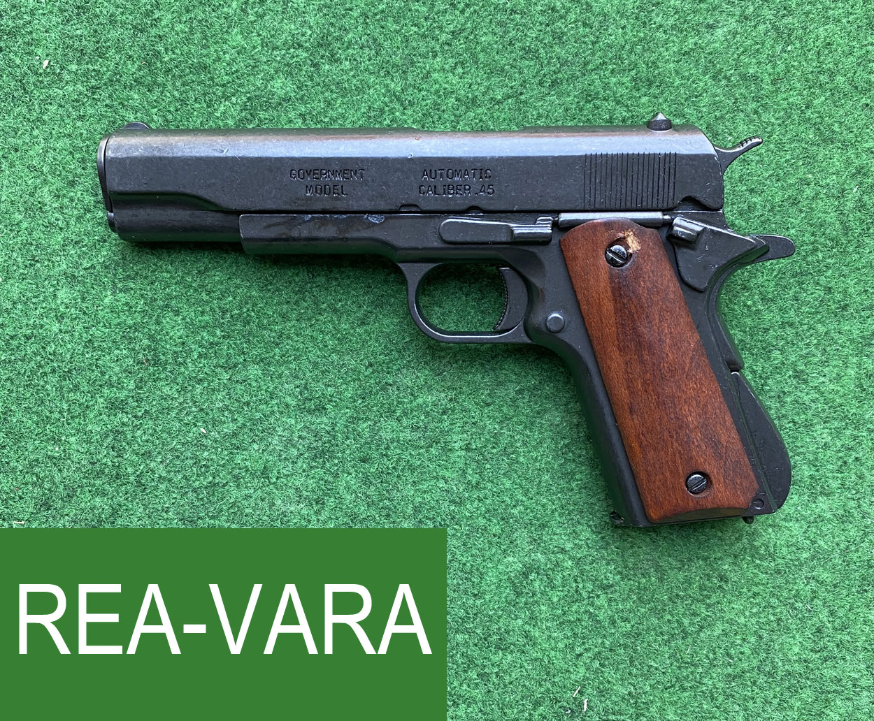 Om REA – Replika pistol USA M1911A1 med trä kolv – .45 (WWI & II)