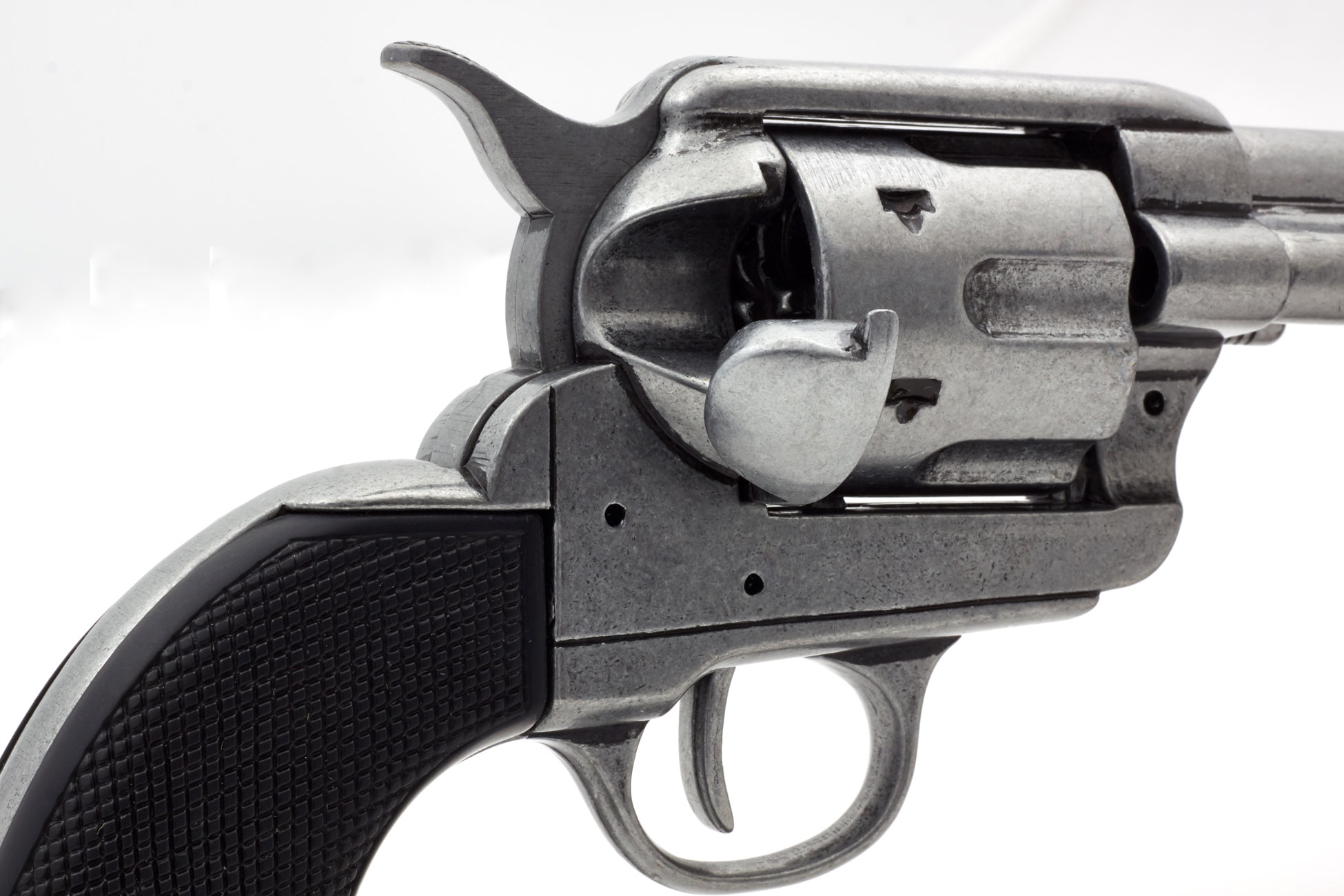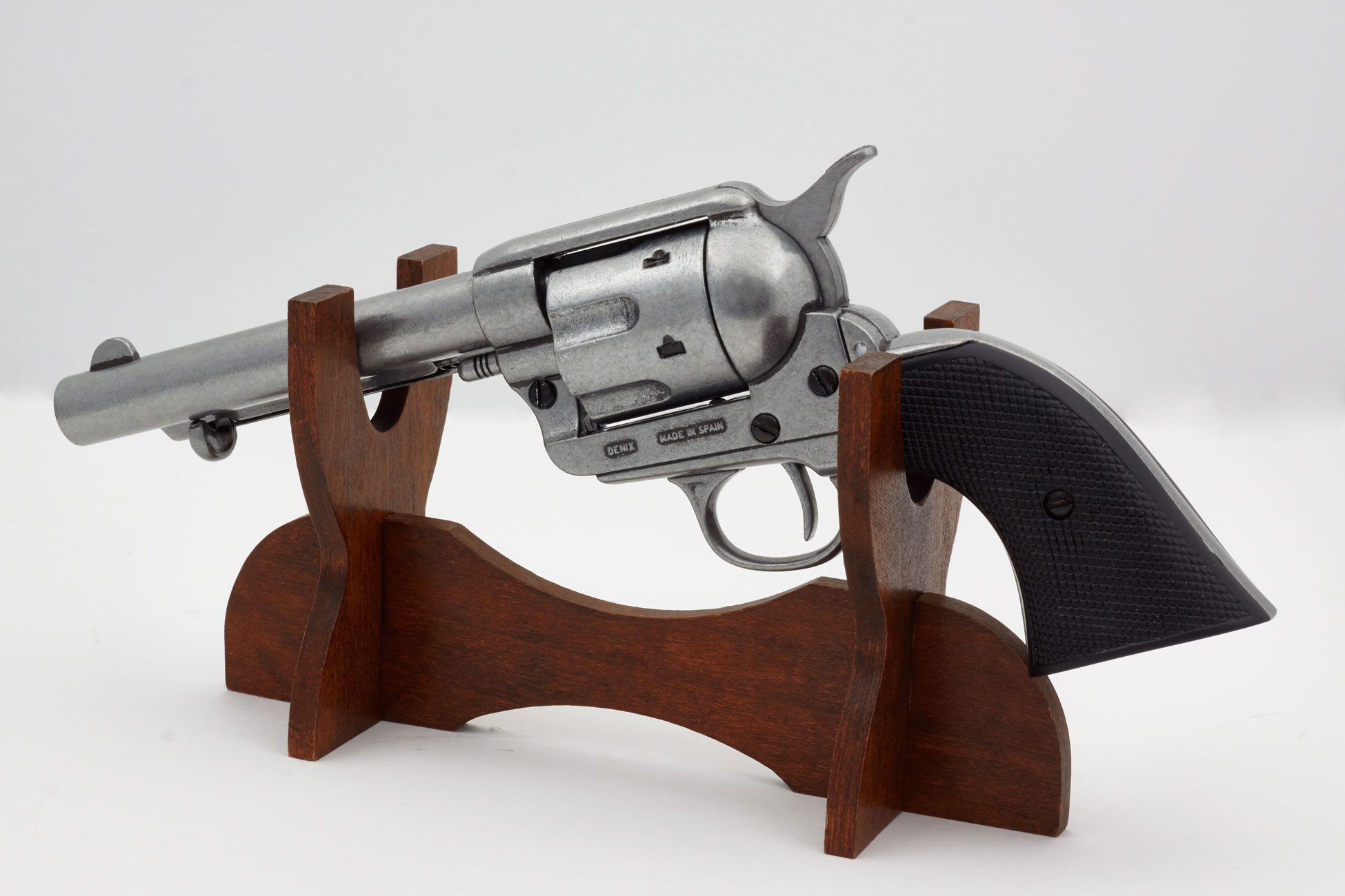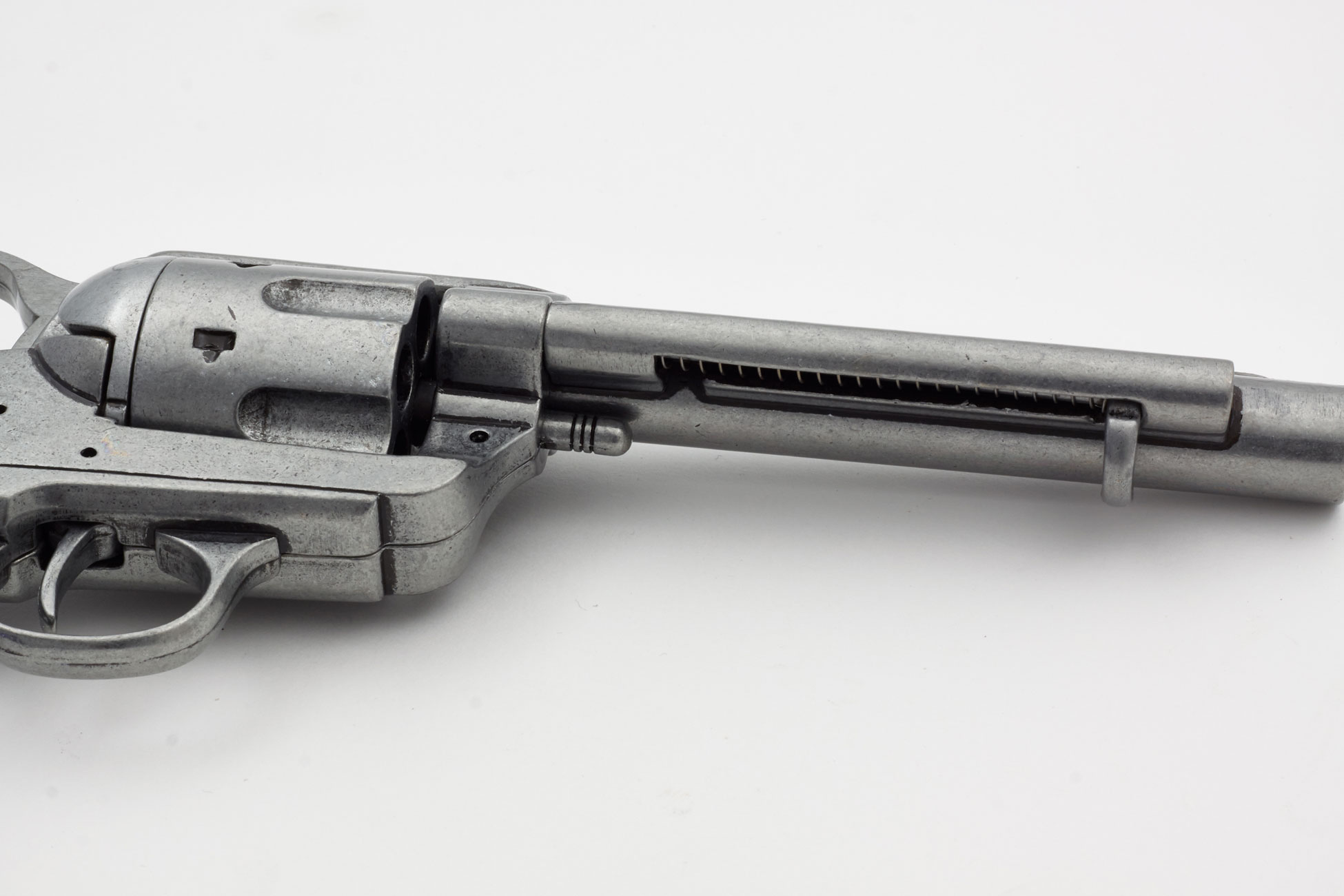 Replika .45, designades som originalvapen av Samuel Colt 1873 – mycket poulär revolver modell ibland ranchfolk, sheriffer/lagmän samt även ”outlaws” dvs. revolvermän och banditer. Modellen var ursprungligen avsedd för amerikanska armén men blev snart i var mans ägo. En bidragande orsak till dess popularitet var bl.a. att priset var relativt lågt samt att ammunitionen var samma som till Winchester M1873 geväret vilket var väldigt praktiskt. Revolvern fick även flertalet smeknamn som peacmaker, widowmaker m.m. Försedd med 5.5″ pipa. Singelaction. Mycket populär samlarklassiker! Replikan har fungerande mekanism – du kan spänna upp hanen och trycka av samt snurra trumman.