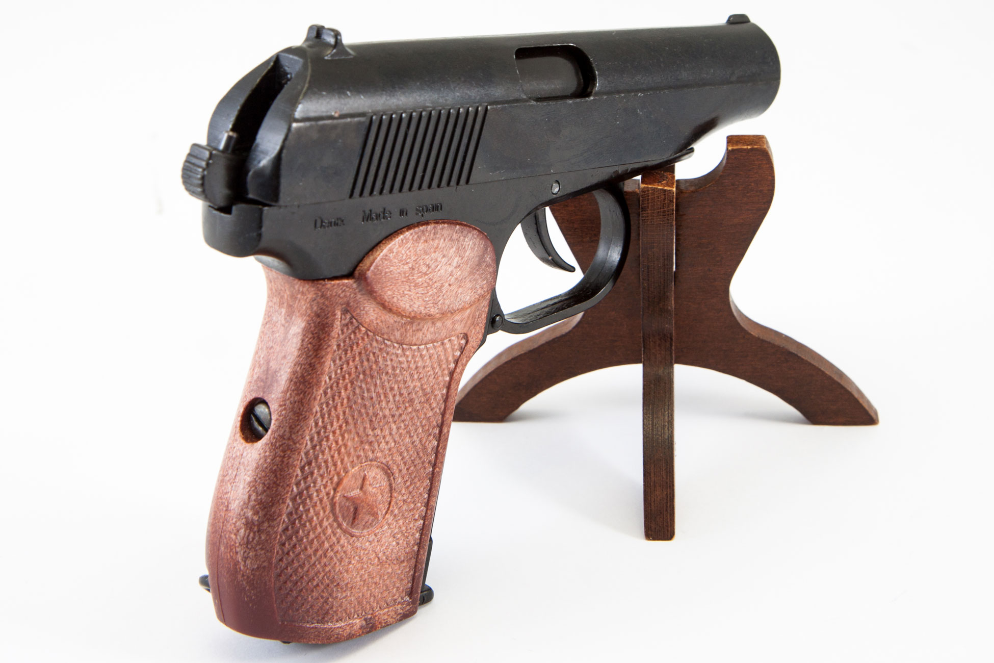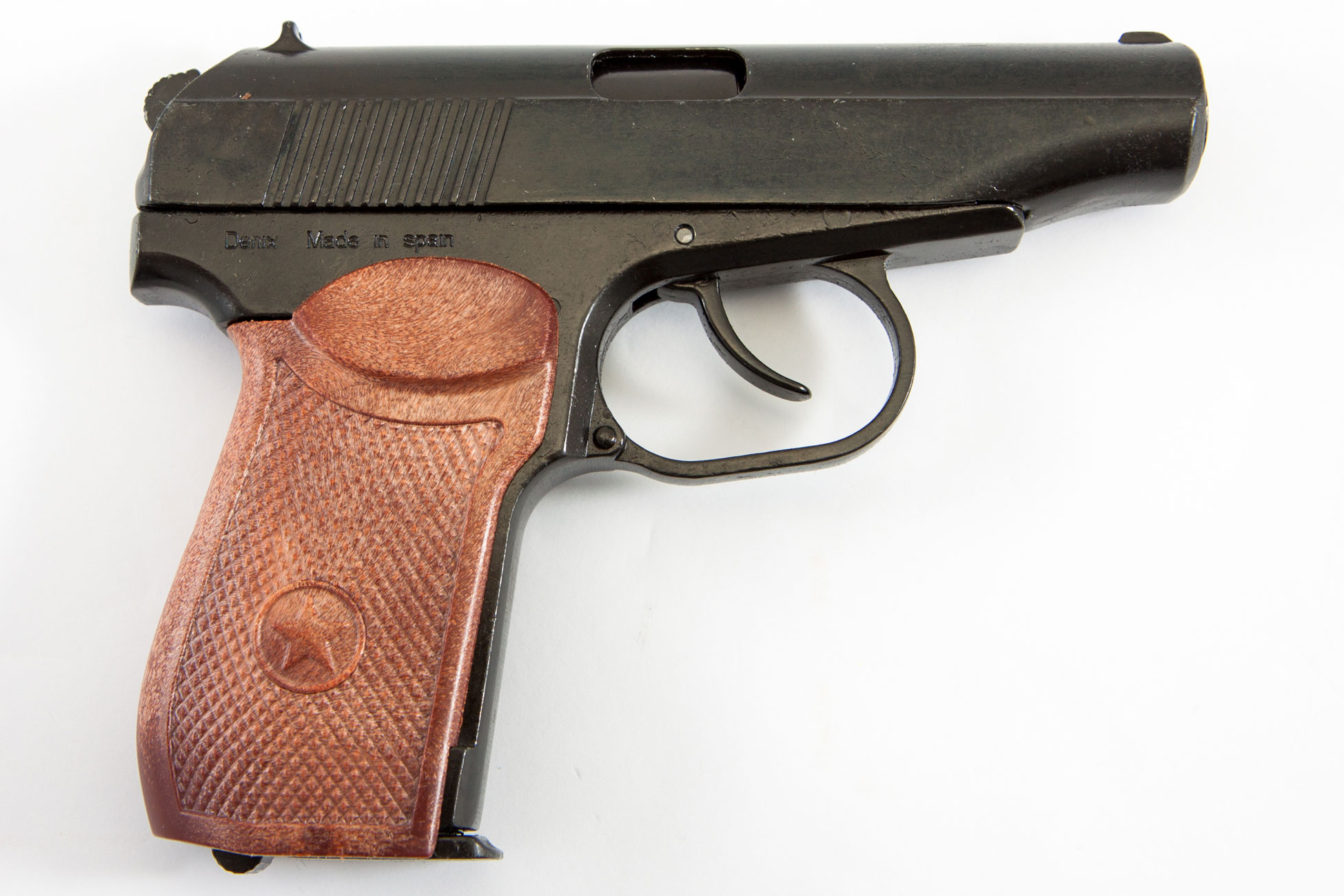 Replikamodell av den Ryska semi automatiska pistolen PM (Piatolet Makmarova) Framtagen under kalla krigets dagar av Nikolay Fyodorovich Makarov (Ryssland 1951). Var sedan Ryska armens och polisens standardpistol ända fram till 1991. Vapnet valdes för dess enkelhet (få rörliga delar),priset samt dess enkla tillverkning men ändå med en hygglig effekt! På denna modellen kan du göra mantelrörelse, avfyra samt plocka ur magasinet.