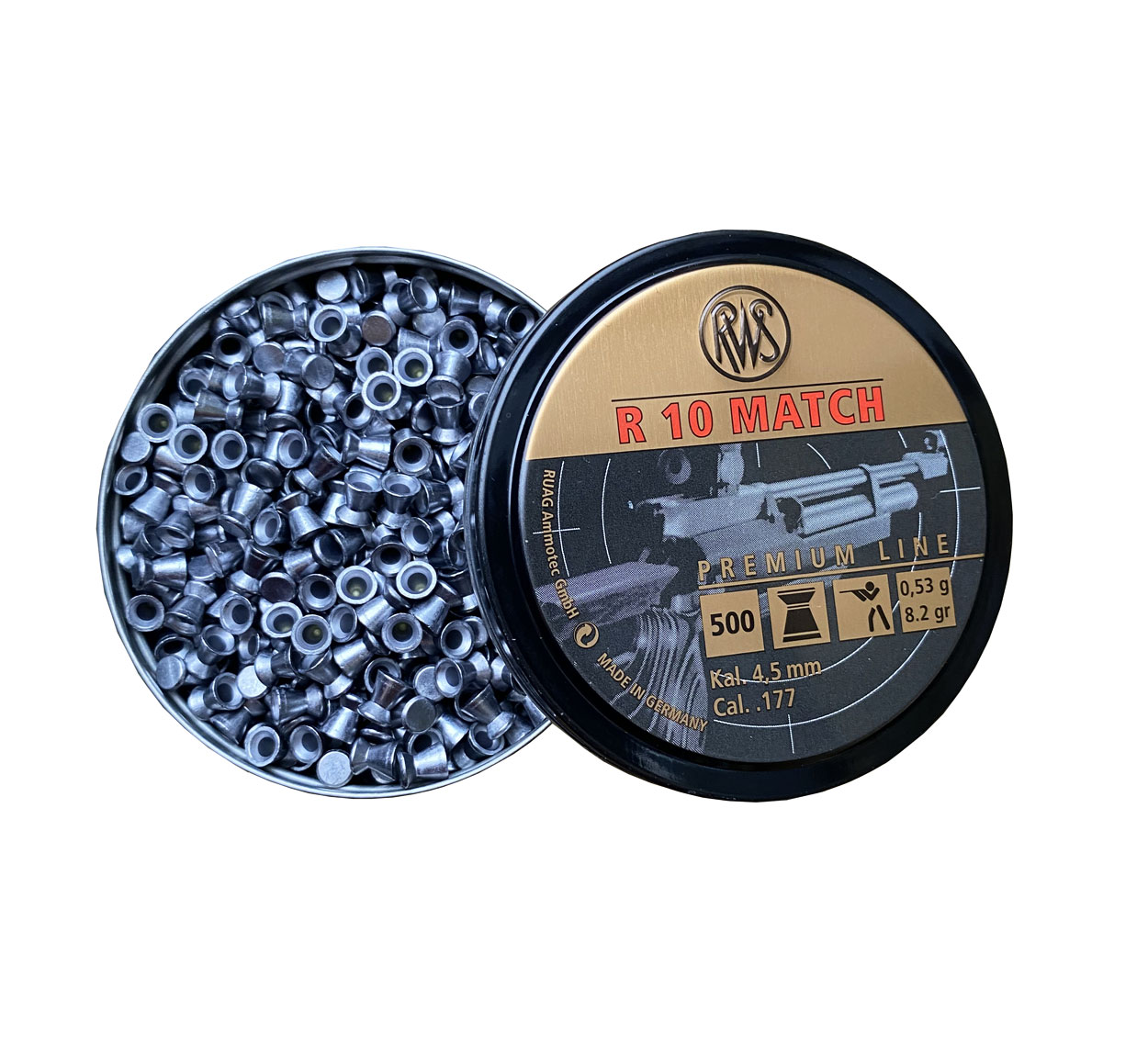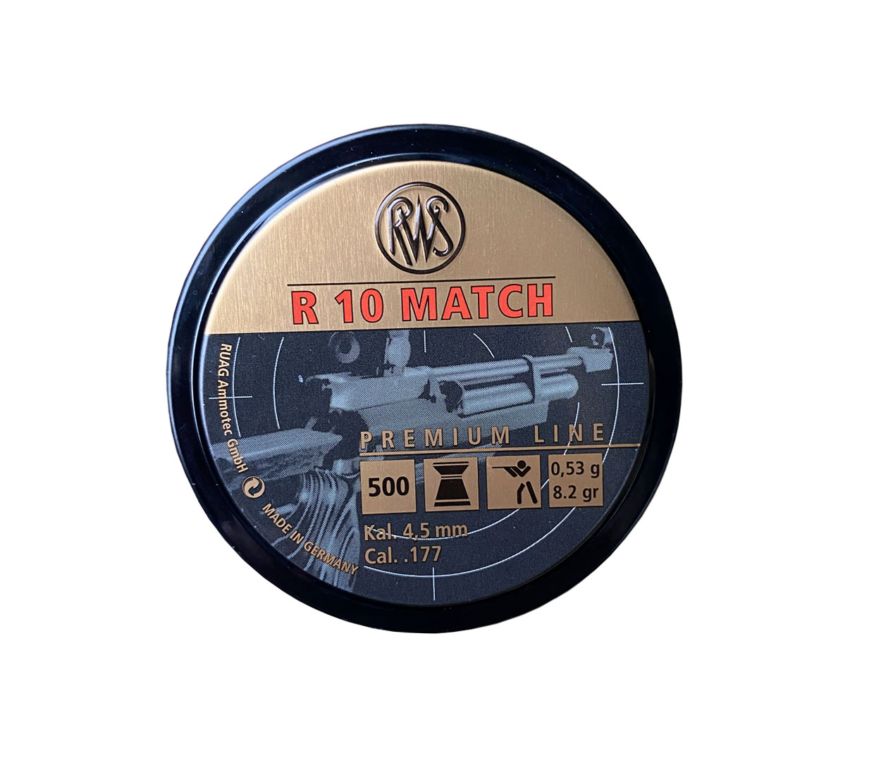 RWS R10 Match Premium luftvapenammunition när bara det bästa är gott nog. Förstahandsvalet för väldens bästa luftvapenskyttar runt om i världen. En optimal kula som tillverkas av ett noggrant utvalt materialval i utformning med de bästa proportionerna och toleranserna samtidigt som den precisions testas professionellt. För att kunna uppnå riktigt fina träffbilder är det A och O att dimensioner och vikt är identiska så här är tysk kvalité när den är som bäst. Dessutom har den ju en väldigt fin prisbild! Köp en burk och testa, vi tror du kommer bli väldigt nöjd!