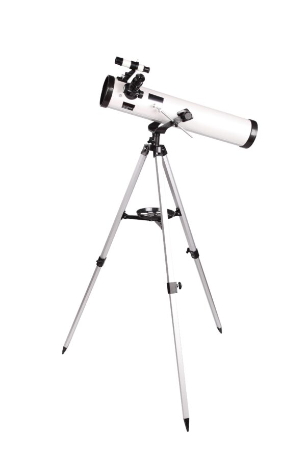 Rocky Spegelteleskop Beginner är en mycket bra stjärnkikare om man vill få ut lite mer när man betraktar våra närmaste planeter jämfört med traditionella stjärnkikare. Med en rejäl linsöppning på 3″ (76mm) och en brännvidd på 700mm (f/9) så gör det att man ser månen och de närmaste planeterna på ett bra sätt. Stjärnkikaren är även försett med ett sökarsikte som har 5ggr förstoring och 24 mm linsdiameter vilket hjälper dig på ett smidigt sätt att rikta in kikaren i den riktningen som du vill titta. Levereras med ett stabilt benstöd av aluminium med justeringar i både höjd och sidled. Max höjd på stativet är 125cm. Stjärnkikaren levereras komplett med 3st okular (4 – 12,5 – 20 mm) samt 2x Barlowlins. Detta ger dig följande förstoringar 35, 56, 175 , 70, 112, samt 350ggr. Det medföljer även ett okular med 1,5ggr förstoring som vänder bilden rätt för observationer på land, vid havet eller liknande. Medföljer även en engelsk manual.