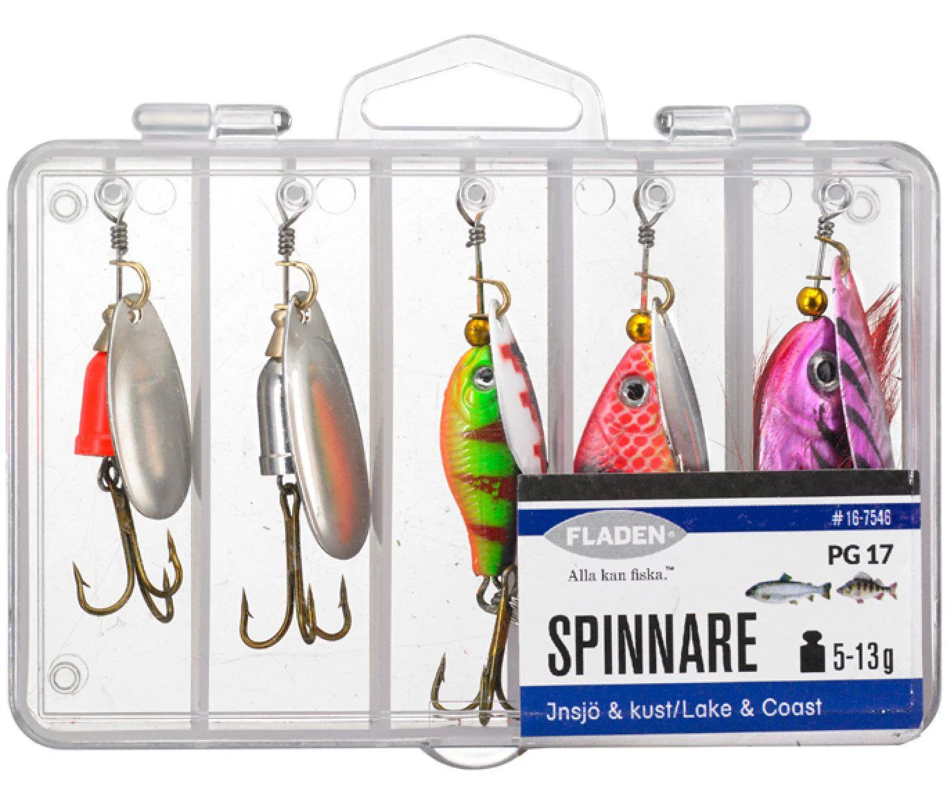 Dragset för insjö – Abborre och Ädelfisk. Abborren är ju en lynnig liten figur där humöret lite avgör ifall den glupskt överfaller ditt drag eller ej. Här har du en bra mix av drag som lockar och ”retar” abboren till hugg. Ädelfisken gillar ju ”ljudvågorna” från spinnaren. Fiskedragen ligger i en viktmix mellan 5 – 13g. Fladen fishing är leverantör av detta mycket prisvärda dragset. Alla kan fiska och fiske är kul så vad väntar du på?